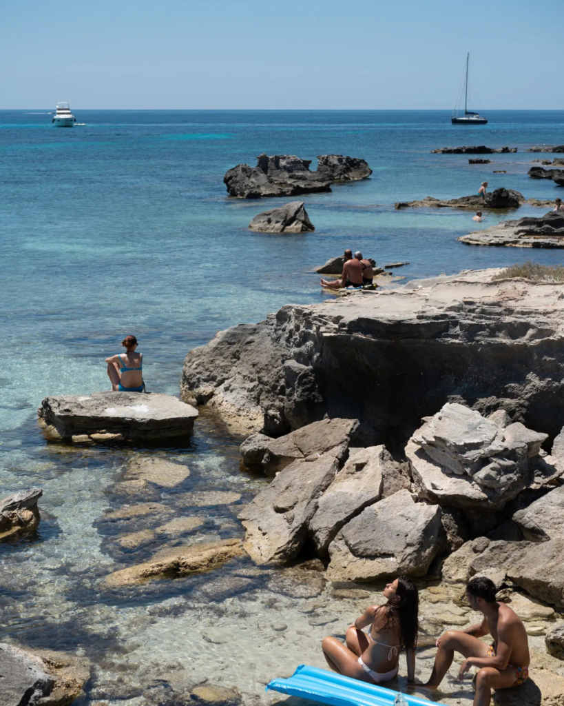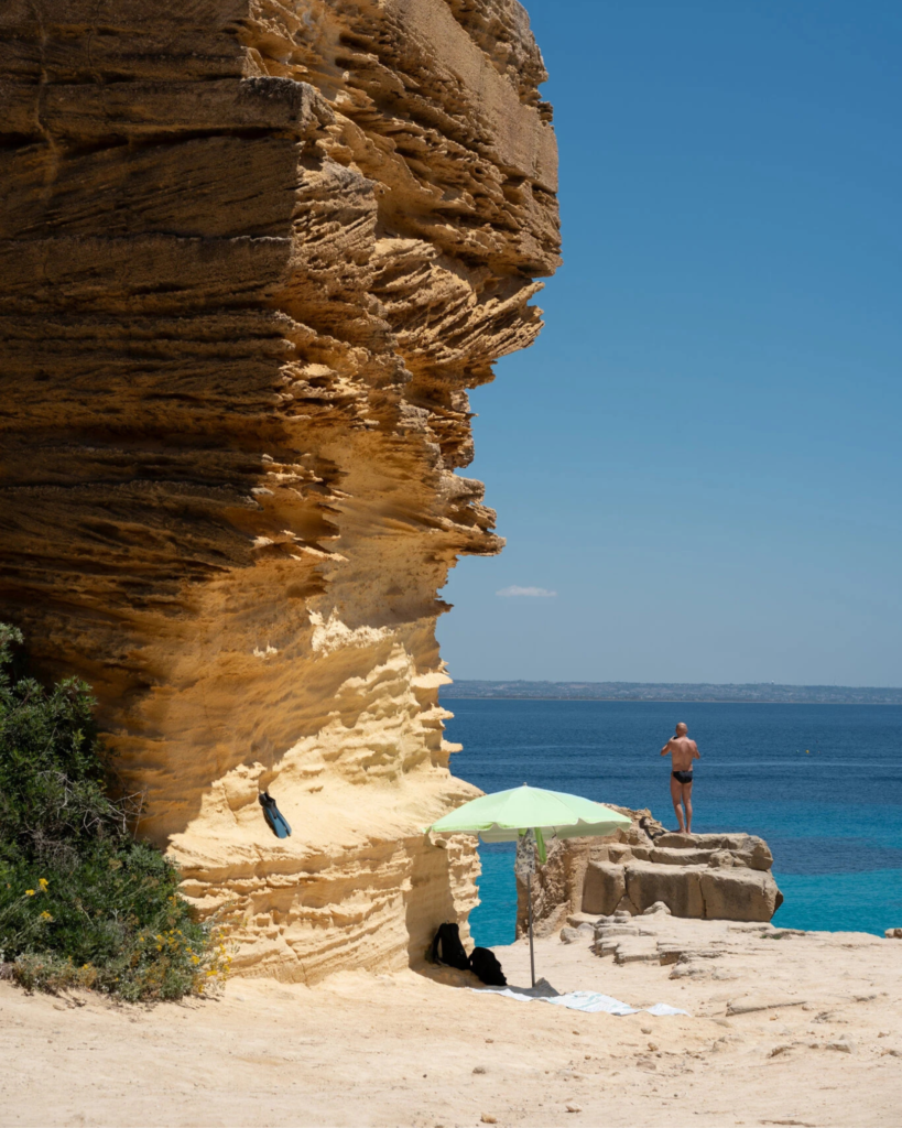 El mayor atractivo de Favignana está en sus calas: Cala Rossa, de aguas turquesas y acantilados de piedra roja; Bue Marino, una antigua cantera hoy perfecta para nadar; y Cala Azzurra, una playa más accesible con arena clara y oleaje suave. Todo se vive en bicicleta o en motorino, entre senderos tranquilos y ese aire despreocupado que invita a desacelerar el ritmo.