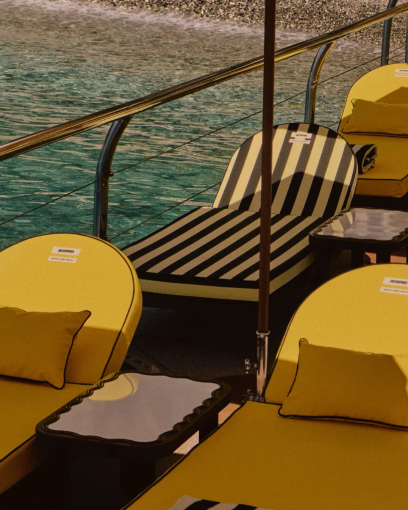 - Monte-Carlo Beach: El Amarillo Sol de Jacquemus Una intervención inconfundible que transformó el icónico muelle con una paleta de amarillo banana y rayas blancas y negras, inspirada en la colección La Croisière.