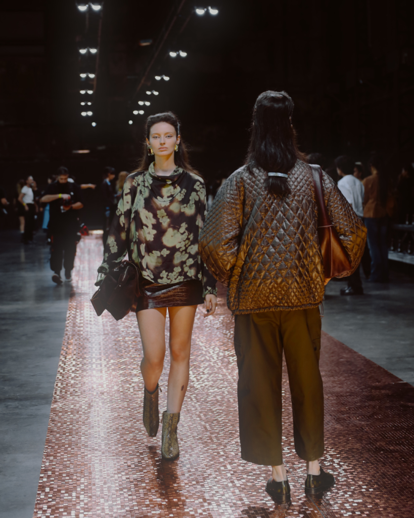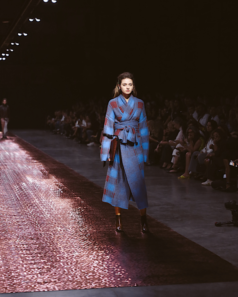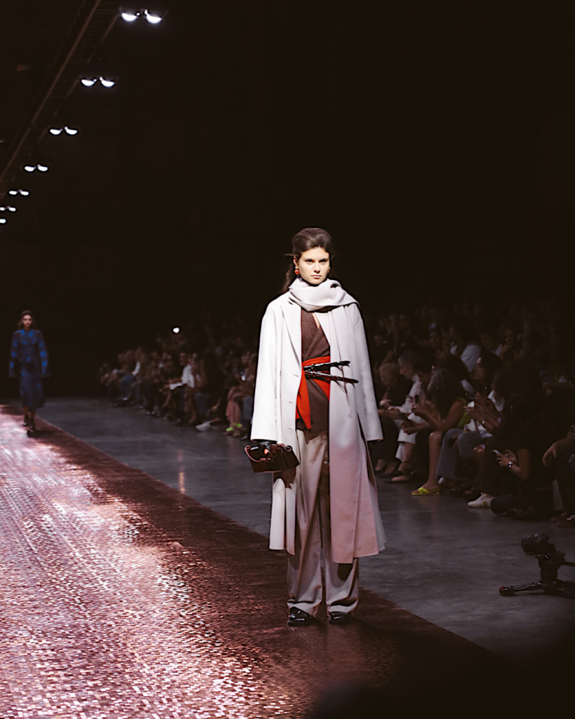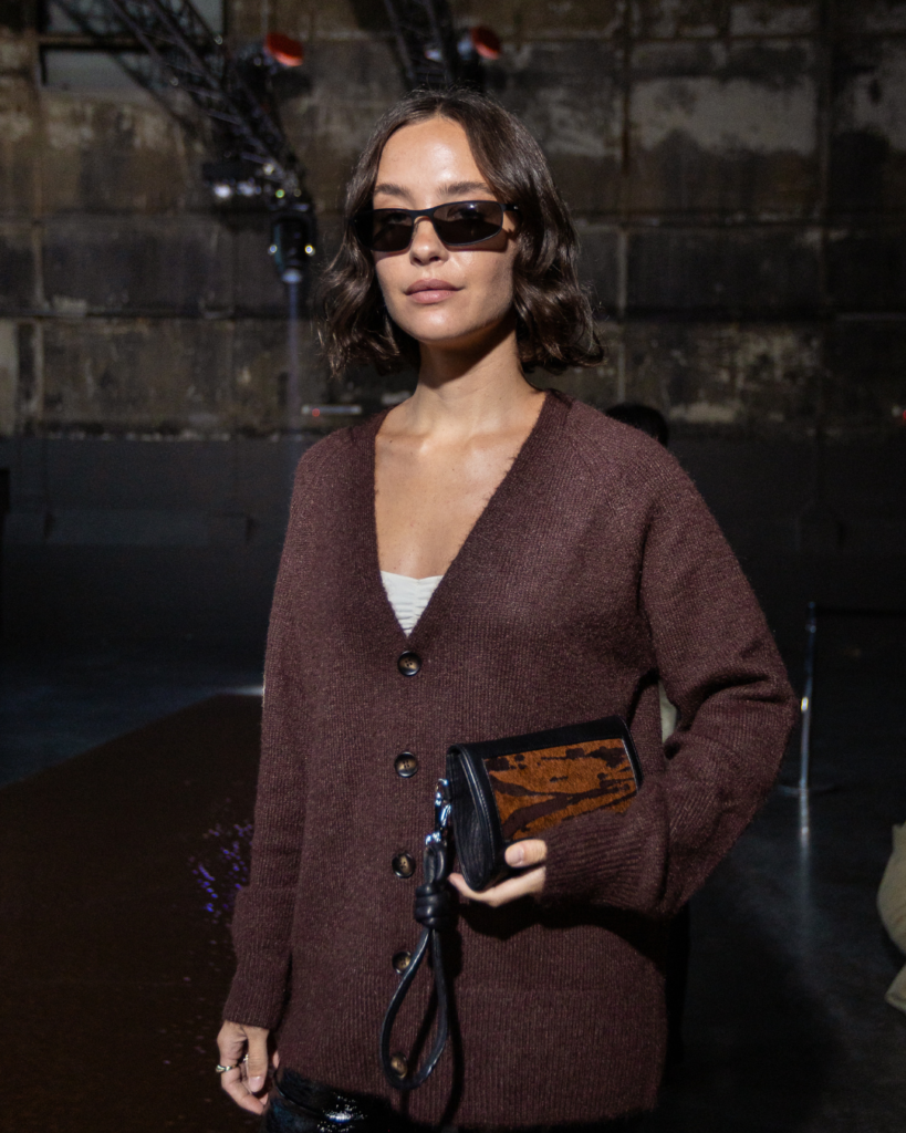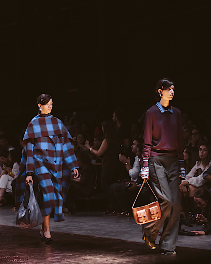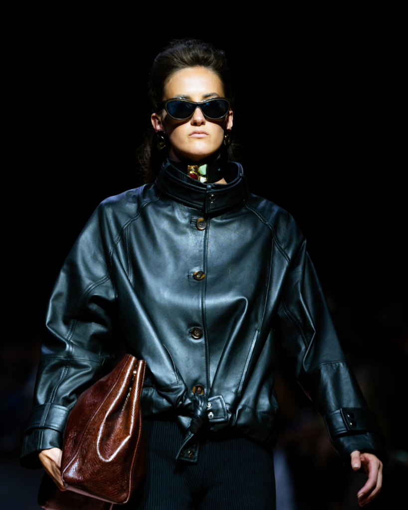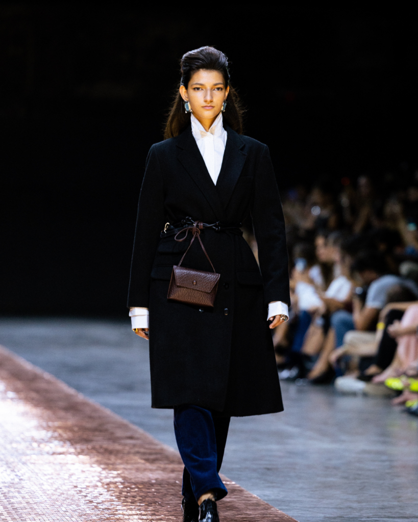 Más que seguir tendencias, la marca reafirmó su capacidad de convertir el diseño en actitud. La marroquinería —uno de los pilares de su ADN— apareció como extensión natural del look: piezas pensadas para acompañar el ritmo de una ciudad nocturna, elegante y eléctrica.