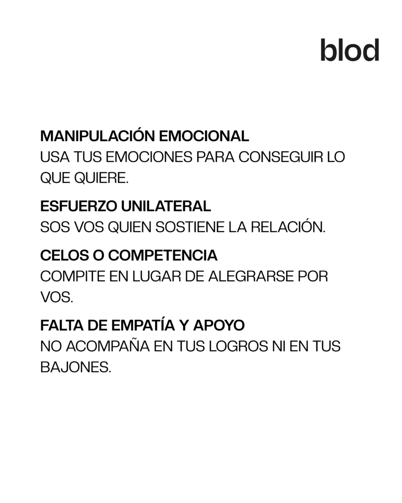 También aparecen actitudes como la manipulación, los celos o el esfuerzo unilateral: cuando sos siempre vos quien sostiene la relación. Uno de los indicadores más fuertes es el gaslighting, esa forma de manipulación en la que te hacen sentir confundido, inseguro o culpable sin razón. A esto se suma la ausencia de apoyo en momentos clave, que deja en evidencia la falta de empatía y el desinterés por tu bienestar real.