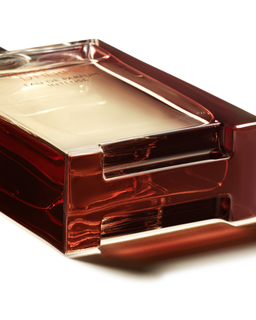 El frasco, lacado en rojo tostado y diseñado por Philippe Mouquet, es una pieza que refleja esa potencia. Con su “H” incandescente en la base, su tapón negro mate y materiales reciclables, es tanto un gesto de diseño como una declaración de respeto por lo que nos da la Tierra.